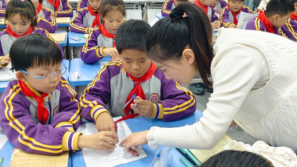 “尺规作图”是三年级数学新版教材新增内容,对小学教师而言兼具陌生感与挑战性。经历了学科组针对“如何把握其核心本质、发展学生几何直观与空间观念”的深度研讨,尹向茹老师进行了《用圆规比较线段长短》课例展示,本节课以教学结构图为备课支架,以实操探究为主要学习方式,将圆规规范运用与数学原理深度融合纵向推进学习进阶,通过搭建递进式问题链让学在掌握方法、感悟本质,尽显“学为中心”的课堂魅力。这节课既为集团学科组教师提供了可复制推广的结构化教学范例,更诠释了高质量教学的核心——立足学情、遵循认知规律,让学生在实践中洞悉知识本质、提升数学素养。
